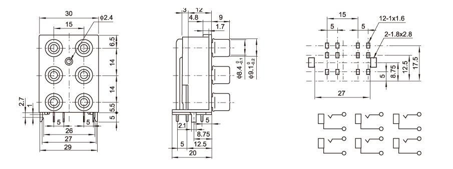B系列3x6侧按
