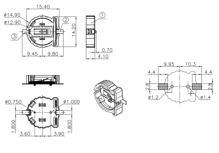 BS-1632-SMT纽扣电池座-贴片